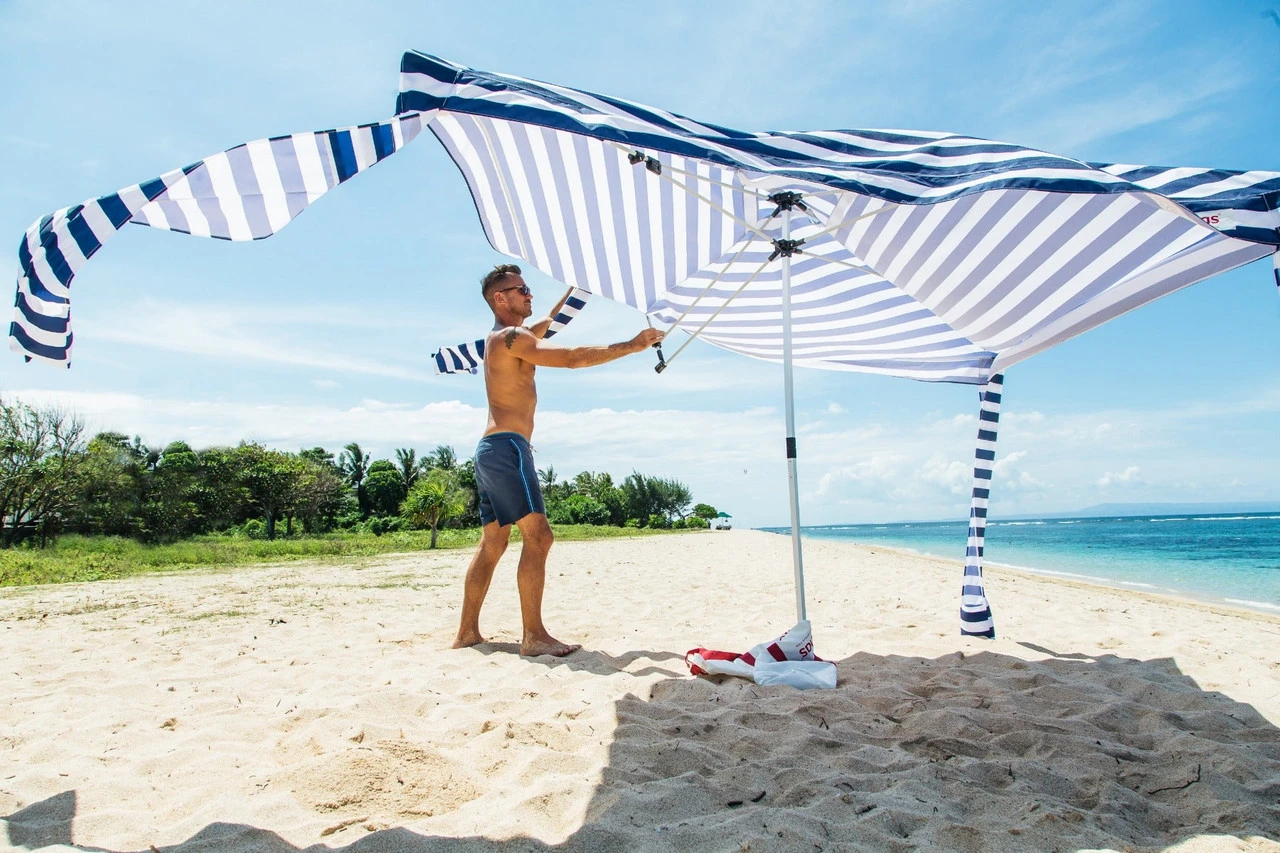 The CoolCabana 5 reimagines what a beach shade can be. No need to worry about your umbrella flying down the beach, not having enough shade, or overheating in an enclosed shelter.Features 36ft² of shade (more than typical 6ft umbrella's 28ft2 of shade) UPF 50+ protection Folds down to 3'5" Sand pockets provide 35lbsto keep you on the beach Also available in LARGE size