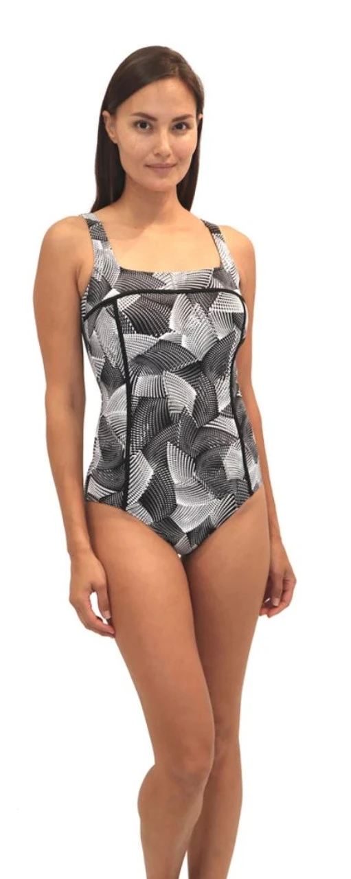 Fit 4 U's Square Neck Tank w/ keyhole back is perfectly Fit 4 Ur D's and E's! This style is designed to minimize the bust, while unique D and E sized supportive cups, lift and shape. A comfortable supportive elastic band inside, wraps under the bra for additional lift. A full tummy control panel is built in to conceal any tummy issues. The bra back design provides additional lift and support at the bust.