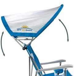 A folding beach chair fit for a captain! Hard armrests, an extra-wide tension seat, and an adjustable UPF 50 canopy give you the support and comfort you need for a long day on the water.Aluminum and steel frameSPF SunShade UPF 50 fabricLarge bowed shape and rotates a full 270 degrees front to backHard arms for additional supportBroad backrest and seatBeverage holderLarge Mouth Bag with backpack strapsBreathable nylon mesh and polyester fabric