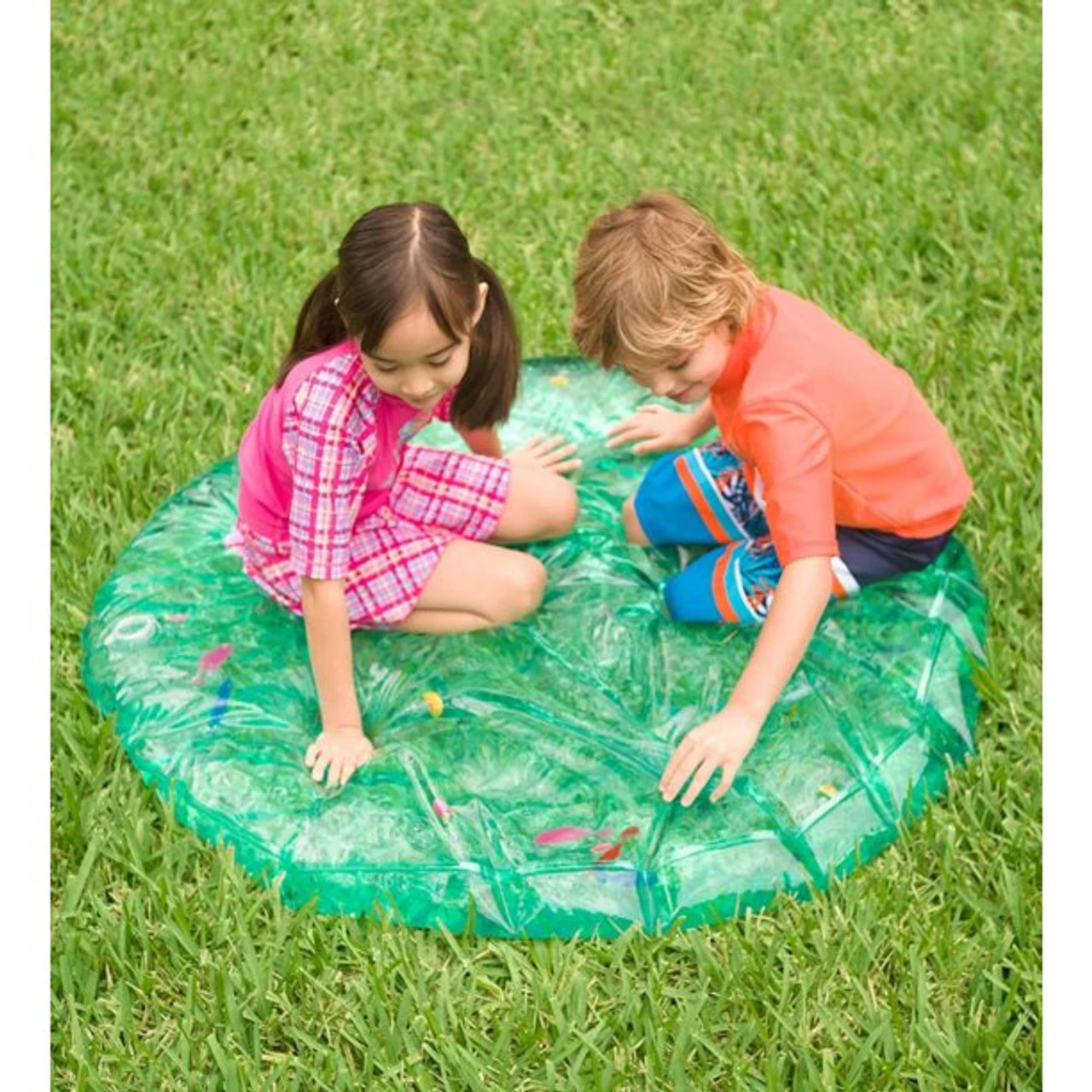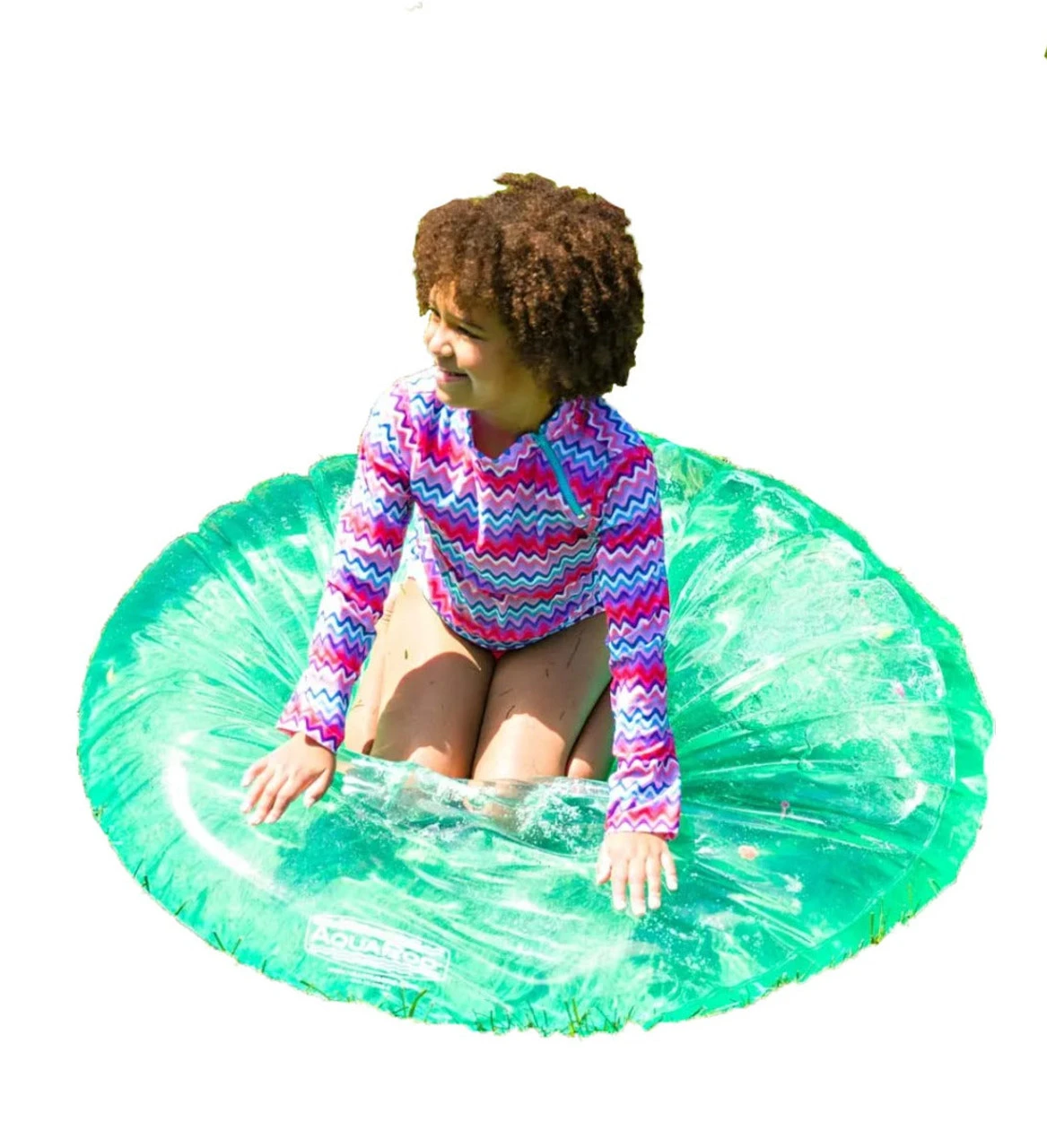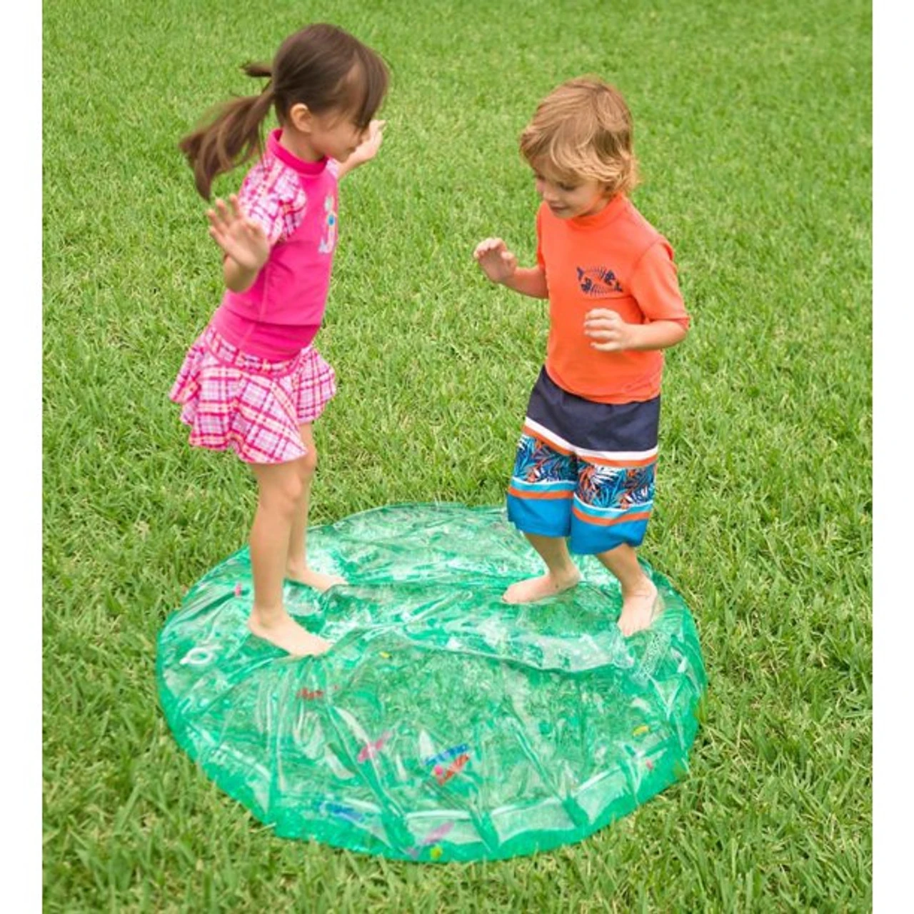 Playing on our Round AquaPod® movable lagoon is just like cooling off in an ocean or pool"”only better, because this translucent, Caribbean-blue pod can be placed anywhere in your backyard.Kids can jump, roll, lie, sit, make waves, chase the fish, and just giggle and giggle. Spray the top to add an extra layer of cool to the floating fun. It is not recommended to leave AquaPods on grass for an extended period of time, as that will affect grass growth. Adult setup and supervision required. Ages 3 and up Size:Approx. 48" diam. š WARNINGCHOKING HAZARD – Small Parts. Not for children under 3 years.