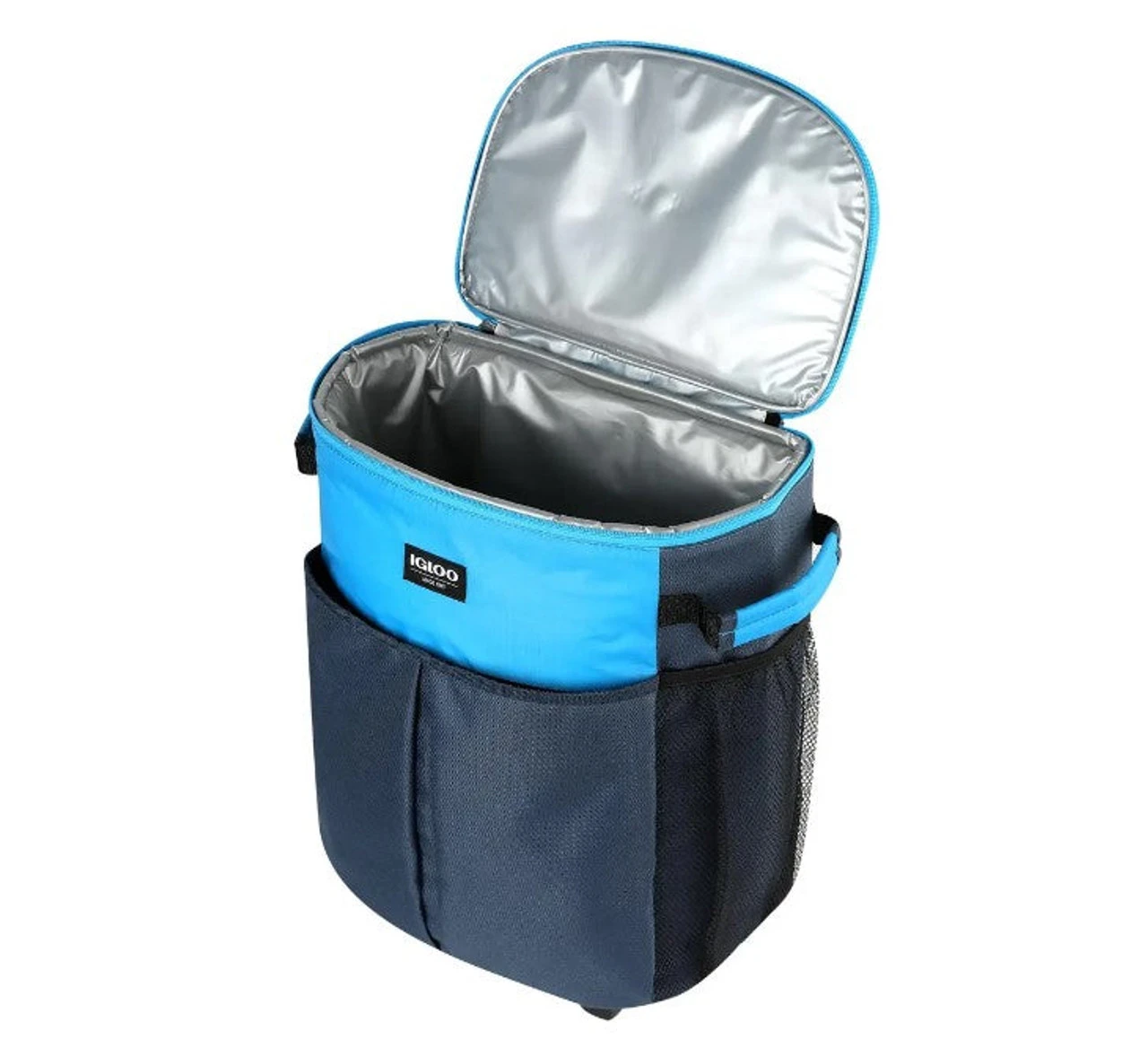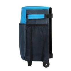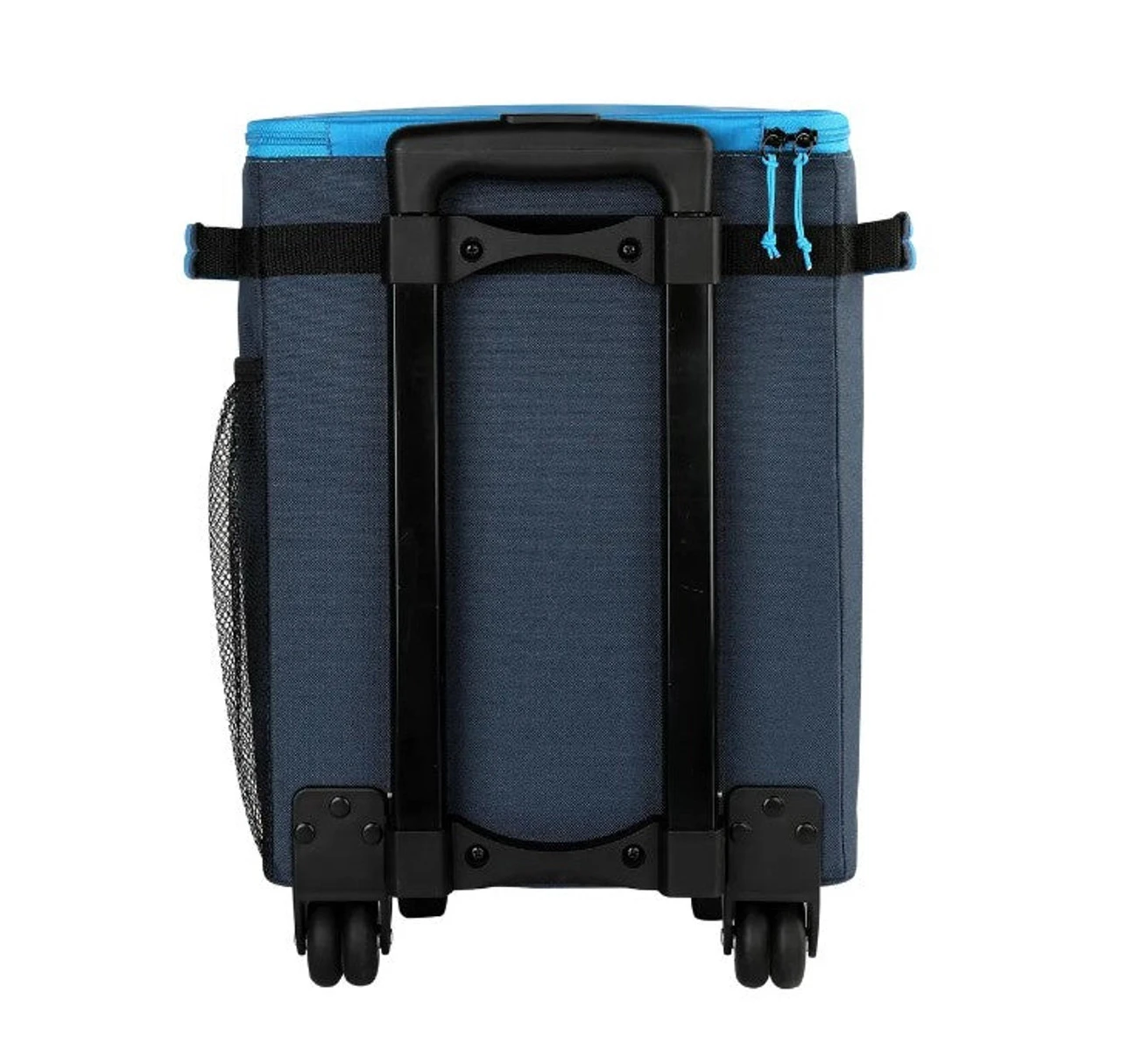 A great rolling cooler for the pool, beach, tailgate, sporting events and more. Telescoping handle and wheels for easy transport Front slip pocket for additional storage Mesh hydration pocket Retractable floor allows roller to collapse for shipping and storage Leak resistant, easy to clean, antimicrobial liner