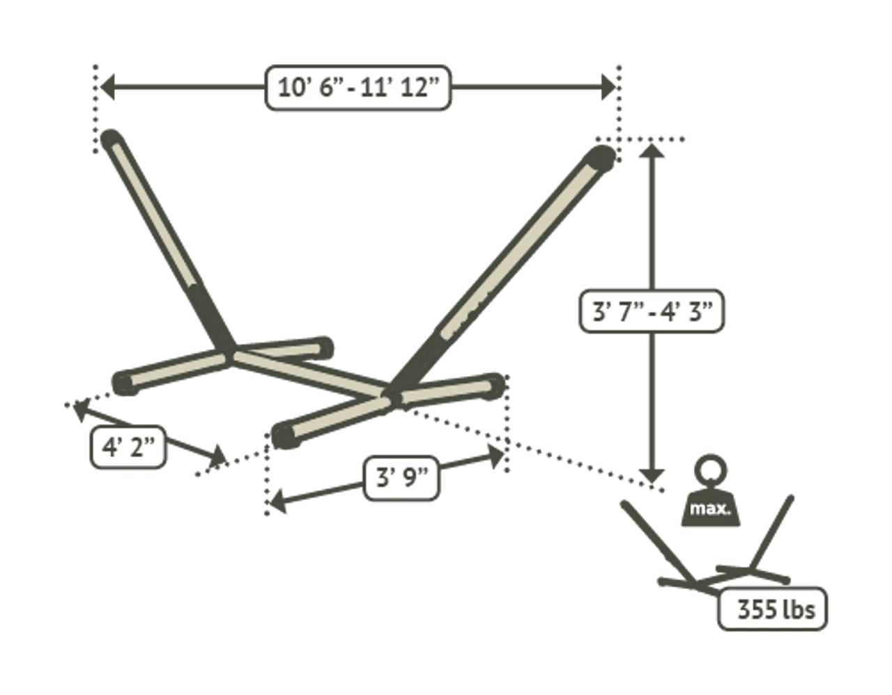 For quick and easy hammock hanging "“ the Nautico Hammock stand, made of powder-coated steel tubes, stress-free! Simply connect the tubes until they click. -Length: 10 ft 6 in – 11 ft 12 in -Height:3 ft 7 in – 4 ft 3 in -Base Width:3 ft 9 in -Our powder-coated steel pipes are weather-resistant and therefore ideally suited for the backyard, garden, patio or pool deck. -Quickly & easily adjust the frame to find your perfect hammock position.