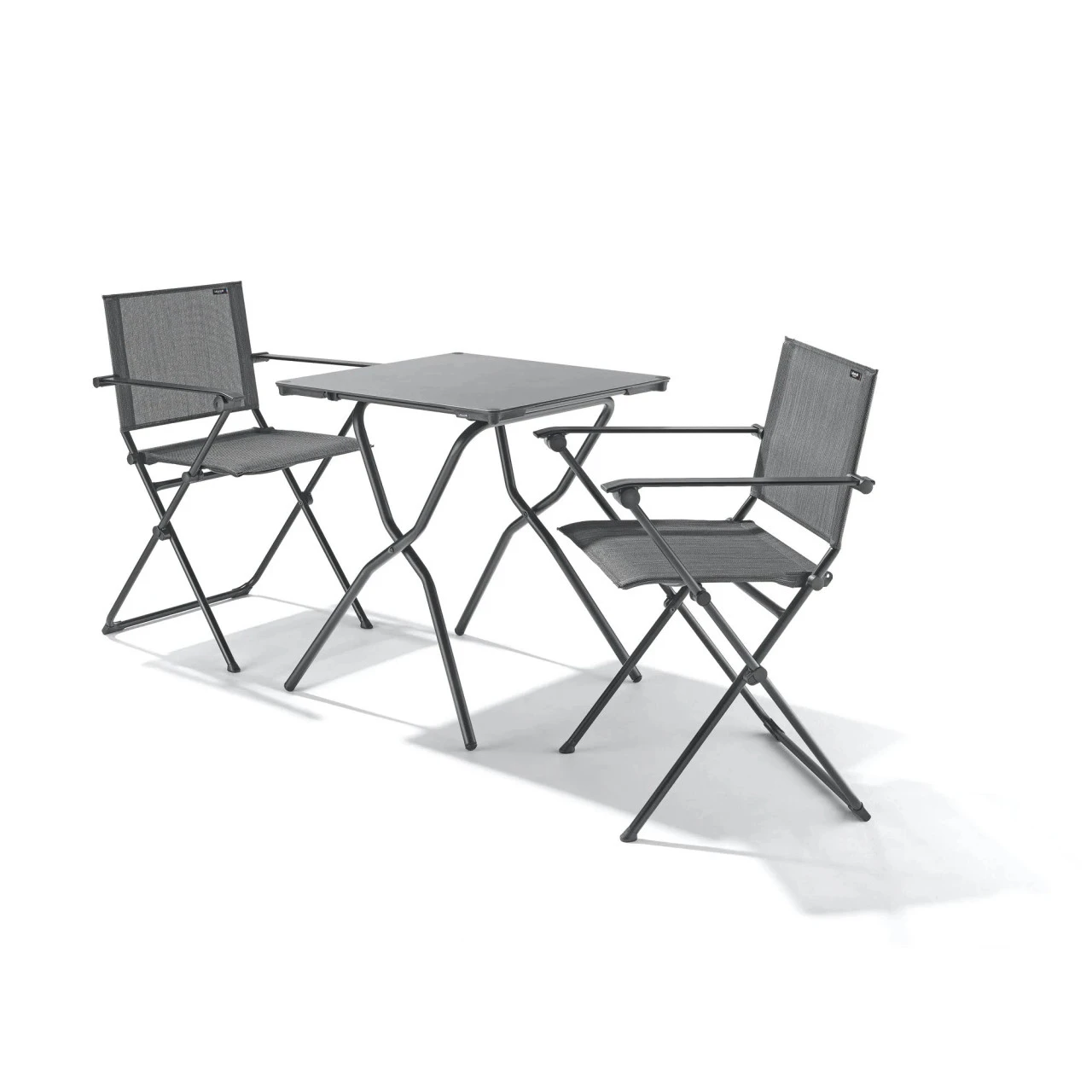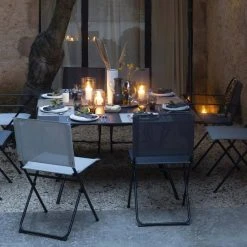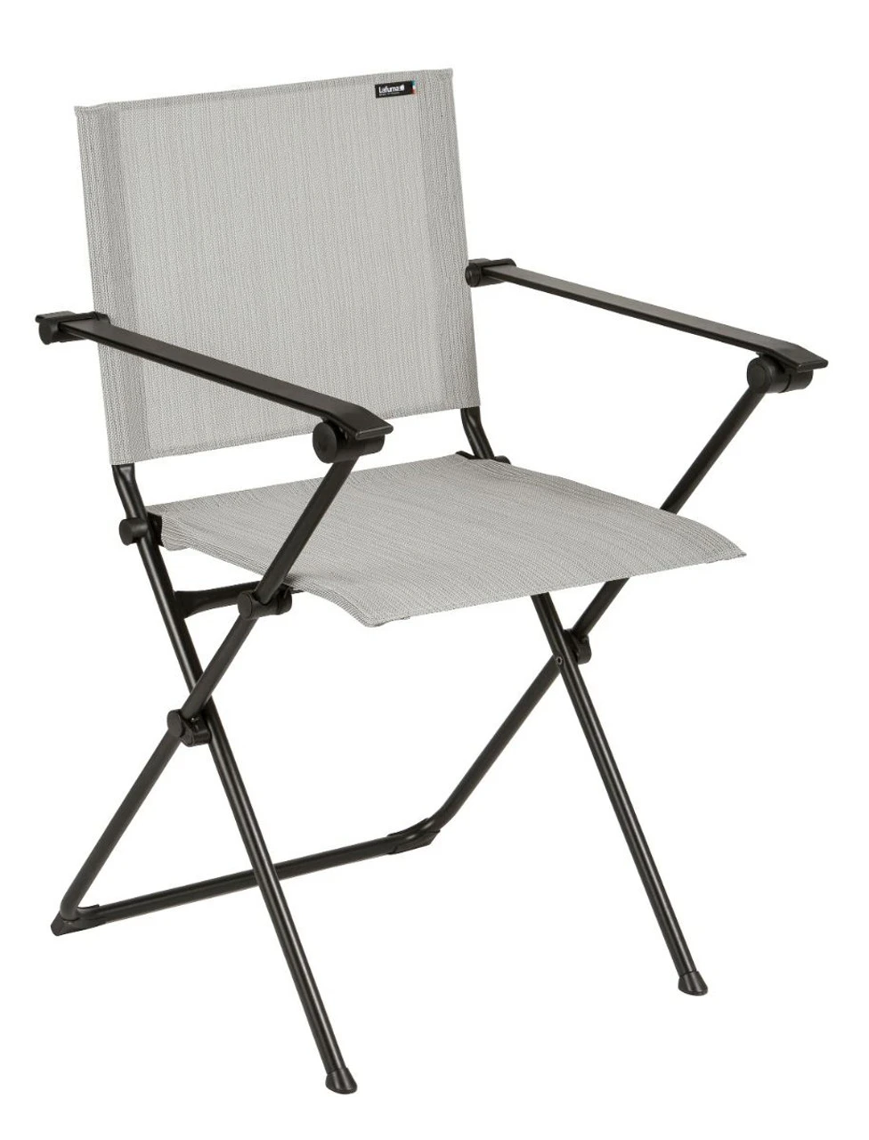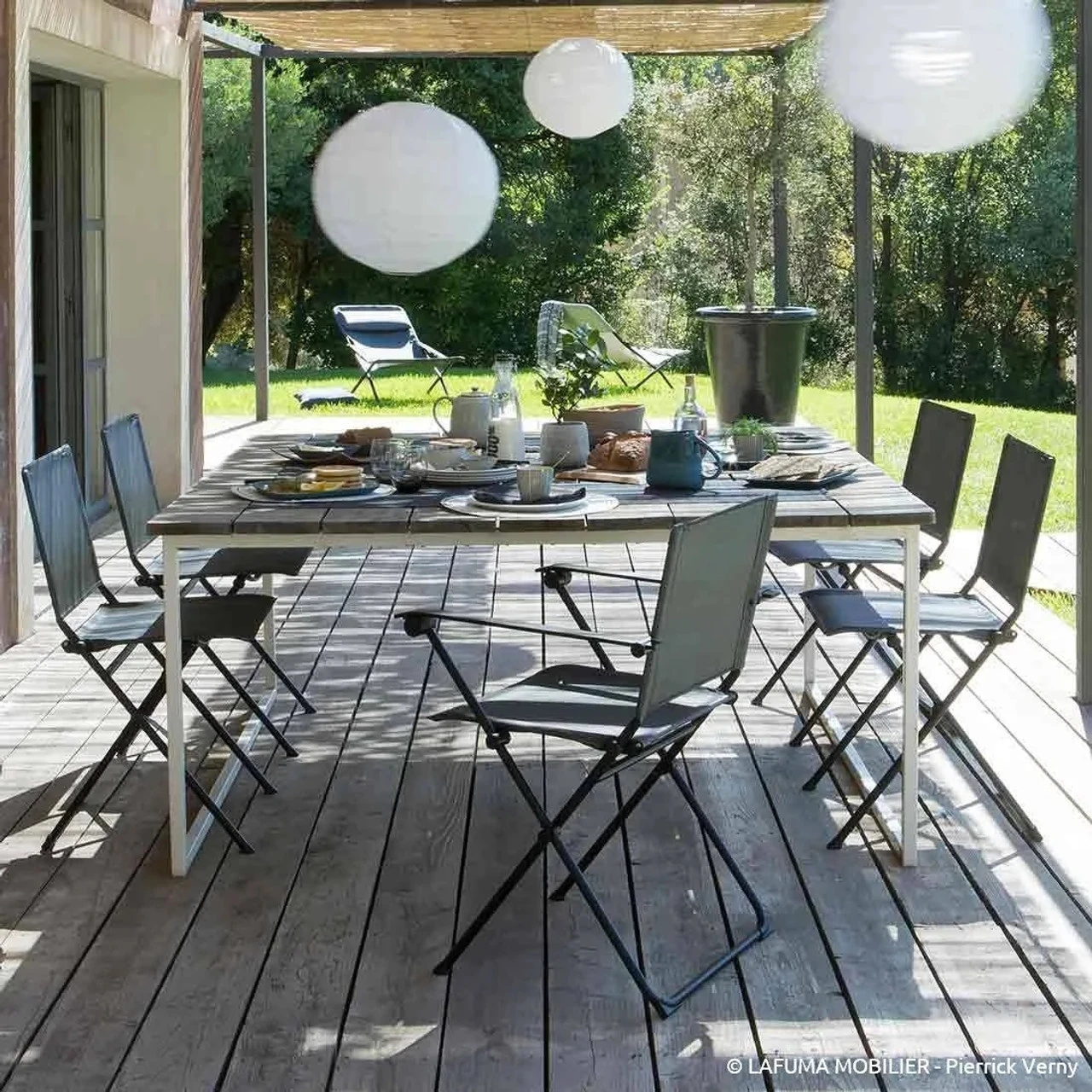 This new chair from LAFUMA MOBILIER is a classic.Its finely made back and generous seat offer comfort, while the calm design and original armrests make it stand out. Being stylish does not prevent it from being both practical and functional: the armrests have been designed as a fine strip "set" on a cylinder at the front and crossing another cylinder at the back, to create easy and original folding. It adds a touch of chic decor at the table, either in the garden or on the patio.