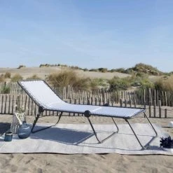 SKU: LAF-0126-1 Categories: Chairs, Lafuma® Siesta Padded Sunlounger - Marine Blue Stripe, Lounge Chairs