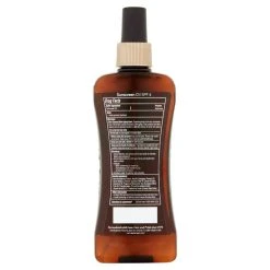 Light sunscreen formula with exotic natural oils Tropical formula of tanning oils Fruit and nut extracts Tropical fragrance Sprays at any angle