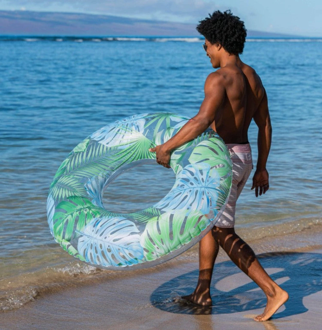 Float in style! •Resort CollectionTropical Palm Print• Jumbo 48" tube holds up to 250 lbs• Made from durable PVC