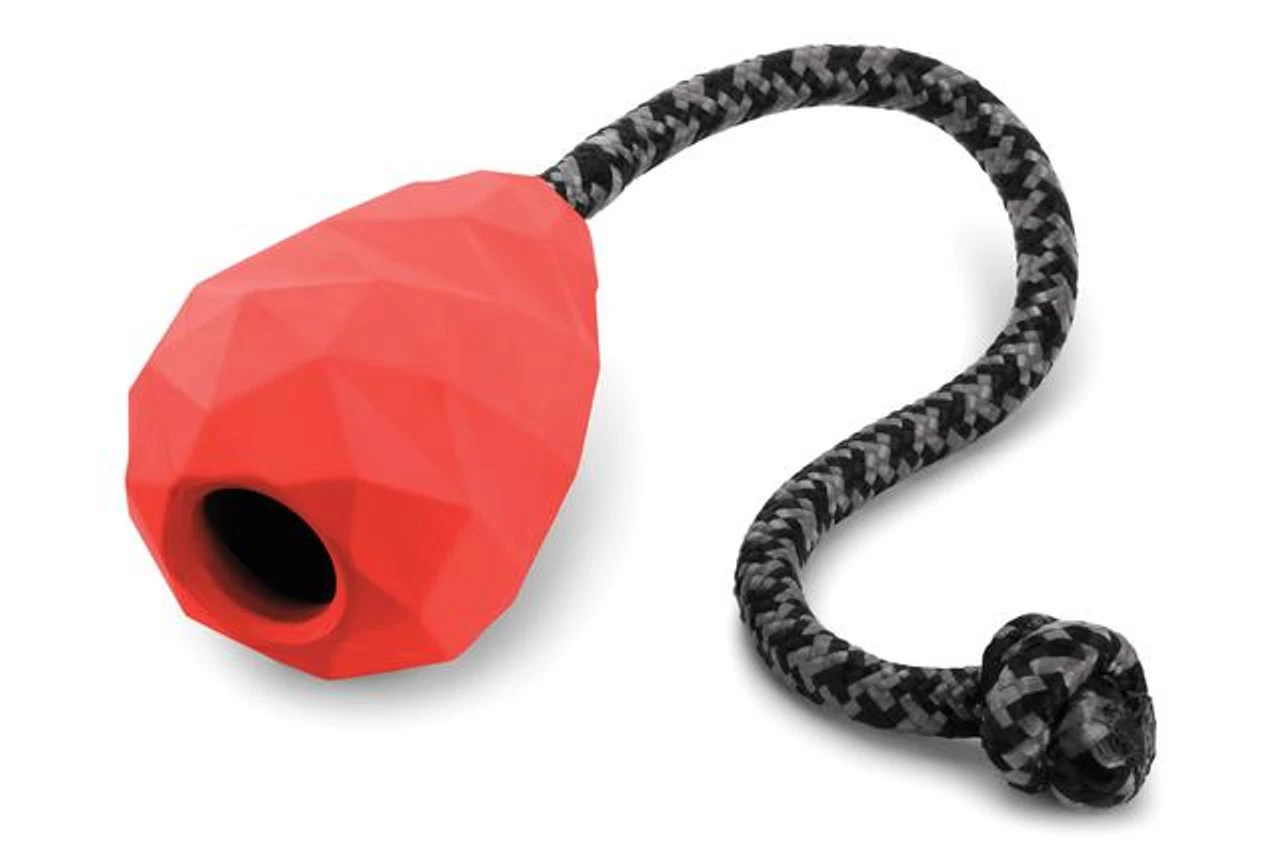 Tug, throw, fetch, repeat: The Huck-a-Cone dog toy was inspired by rewarding play between avalanche dogs and handlers during training. We took our popular Gnawt-a-Cone™ and added a knotted rope handle, providing excellent grip during training drills and rewarding play. The natural sustainable rubber toy is tough enough for even the most persistent canines.