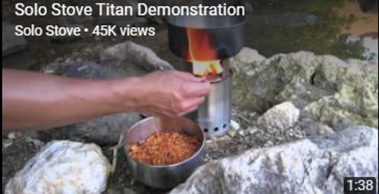 Cooking for two? Titan is your helpful companion for hiking, backpacking, and culinary adventures. **Check out our Solo Stove® Titan demonstration videos**Weighing just over a pound, it"™s ready to travel, warm, and inspire you. Solo Stove® Titan Features: Our Signature 360° Airflow Design„ creates a super efficient burn using sticks and twigs so you can have hot food in minutes The lower vent holes draw in air which heats up inside Titan"™s double-wall construction. The heated air ignites after leaving the upper vent holes, creating a spectacular secondary burn. Fast boil times, a hotter fire, and less smoke!