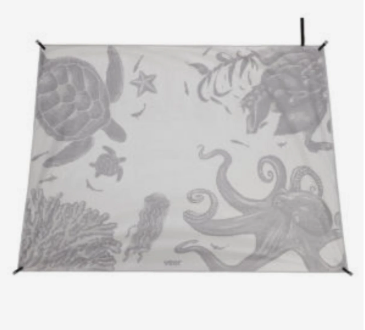 The Veer® custom sand mat leaves sand at the beach where it belongs. Designed to fit the floor of the Family Basecamp or to be used alone. Filters sand for a sand free surface Water resistant polyester weave Dimensions: 6' X 8.5' Weight: 4.9 lbs To use with Family Basecamp: Fully open the Family Basecamp Remove the standard floor by unclipping the corner clips Attach the Sand Mat to the corner clips To pack up after a day at the beach: While the Basecamp is fully open, remove Sand Mat by unclipping the corners Shake mat of any leftover sand and fold to the length of the storage bag Close Family Basecamp, roll to compress and secure with elastics Pack the Family Basecamp and folded Sand Mat into the carry bag
