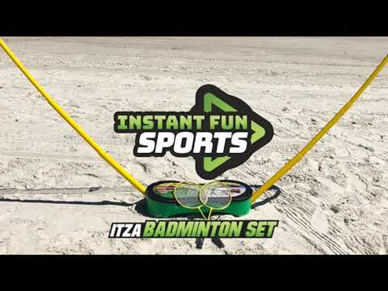 Bring the Party and fun with you anywhere with this portable Badminton set! Features Set up anywhere Includes Net 2 Telescopic Poles 2 Rackets 2 Shuttlecocks Comes in Carry case Ages 8+ Liven up your backyard or swimming pool with the ItzaBadminton Set! Including all of the essentials necessary to begin a rousing game of badminton, this set has everything you need to turn the ordinary into the extraordinary! Versatility is the key as this set can be maneuvered on the go. Whether you're looking to play at the beach, in the backyard or in the water itself, everything is possible with the ItzaBadminton Set. This set includes a: 9' L x 11' W Net, 2 Telescoping Poles, 2 Rackets and 2 Shuttlecocks.